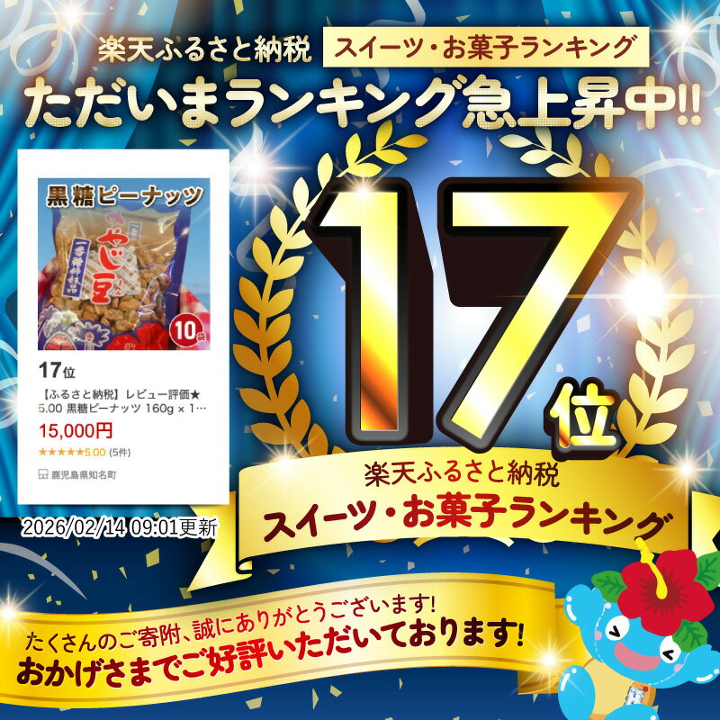 - 【ふるさと納税】レビュー評価★5.00 黒糖ピーナッツ 160g × 10袋 松元青果 やじ豆 黒糖 ピーナッツ 香ばしい 沖永良部島 伝統菓子 自然食品 落花生 スイーツ お菓子 おやつ お土産 プレゼント 鹿児島県 知名町 お取り寄せ 送料無料