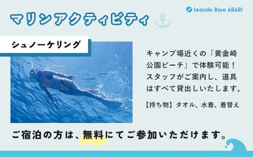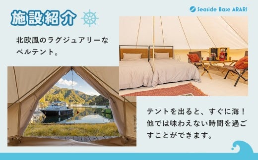 - 西伊豆の海沿いSeaside Base ARARI グランピング 1泊宿泊券1名様(素泊まり) 宿泊 グランピング 体験 旅行 海 夕陽 伊豆 マリン体験