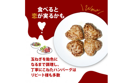 - 恋バーグ(ハートの形のハンバーグ)4個セット 600g 国産黒毛和牛 国産豚 合い挽き 飴色玉ねぎ ハート型 かわいい ジューシー 時短調理 簡単調理 ギフト お祝い プレゼント 贈り物 熨斗 お中元 お歳暮