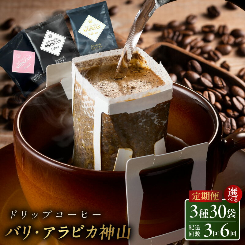 - 【ふるさと納税】ドリップコーヒー バリ アラビカ神山 3種30袋 定期便 全3回 / 全6回【毎月配送コース】
