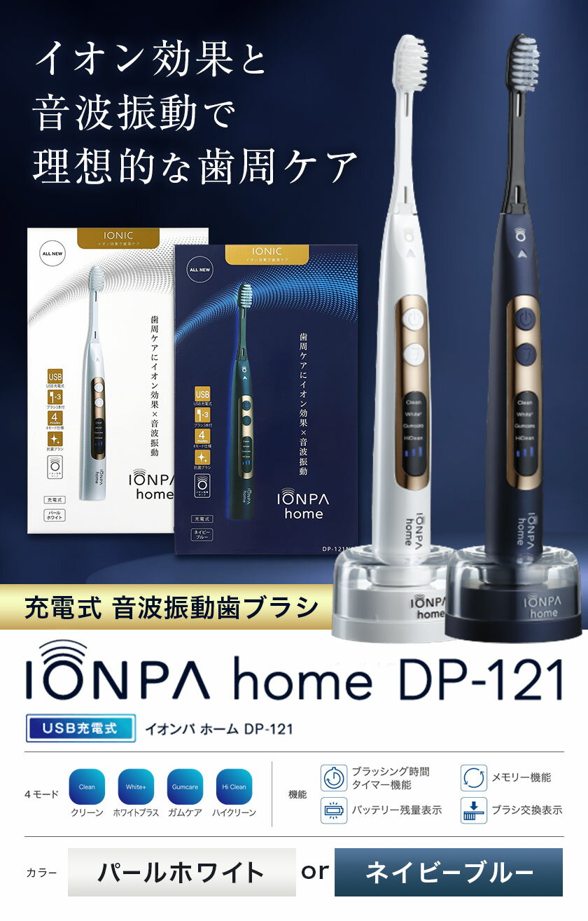 - 【ふるさと納税】電動歯ブラシ 音波振動歯ブラシ IONPA home DP-121 パールホワイト ネイビーブルー 《30日以内に出荷予定(土日祝除く)》 本体 イオン USB 充電 ionic アイオニック 電動 歯ブラシ はみがき 家電 マウスケア 健康 歯周病予防 歯周ケア ホワイトニング