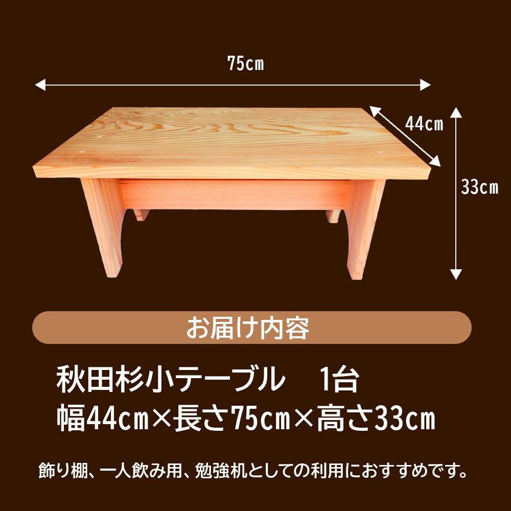 【ふるさと納税】職人手作り 秋田杉小テーブル(幅44cm×長さ75cm×高さ33cm)