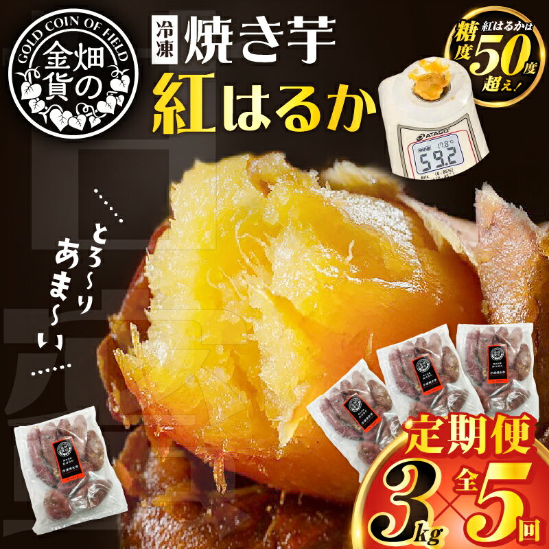 - 【ふるさと納税】【全5回】 畑の金貨 焼き芋 紅はるか 3kg 定期便 送料無料 冷凍 甘い 完熟 熟成 糖度 蜜 芋 さつまいも 急速冷凍 冷凍 産地直送 甘いも販売所 甘いも 甘芋 鹿児島市 土産 贈り物 プレゼント ギフト 贈答