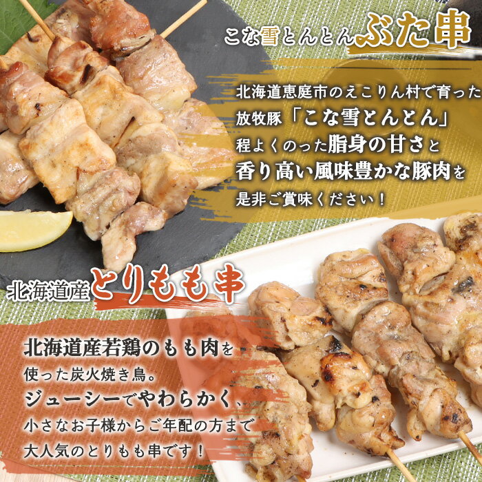 - 【ふるさと納税】こな雪とんとん ぶた串 北海道産 とりもも串 各5本 計10本 オンライン 申請 ふるさと納税 北海道 恵庭 豚串 豚 放牧豚 焼き鳥 鳥もも とりもも 串 炭火焼き 惣菜 おかず おつまみ 簡単調理 時短 冷凍 恵庭市【810012】