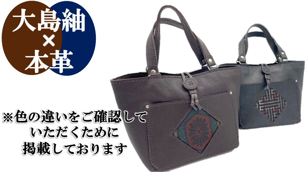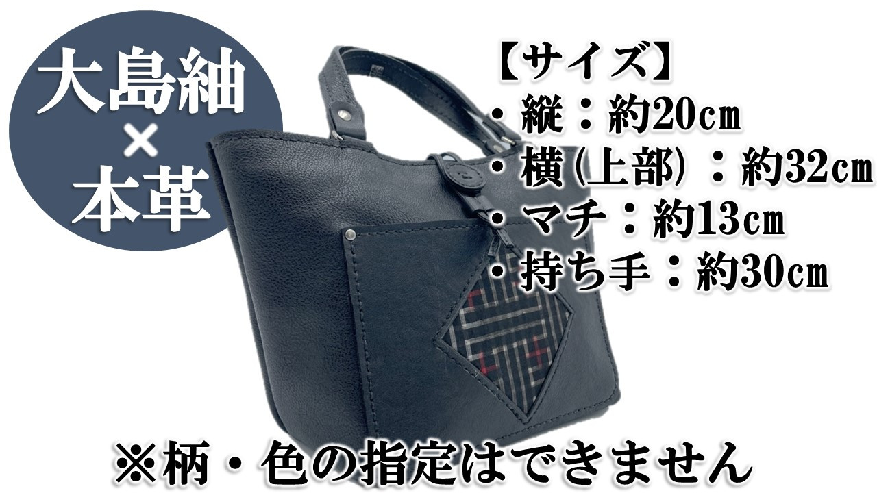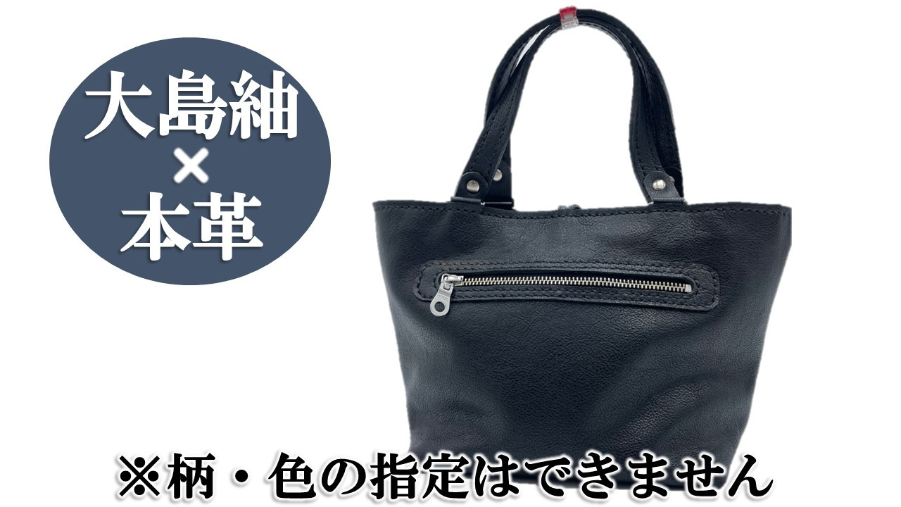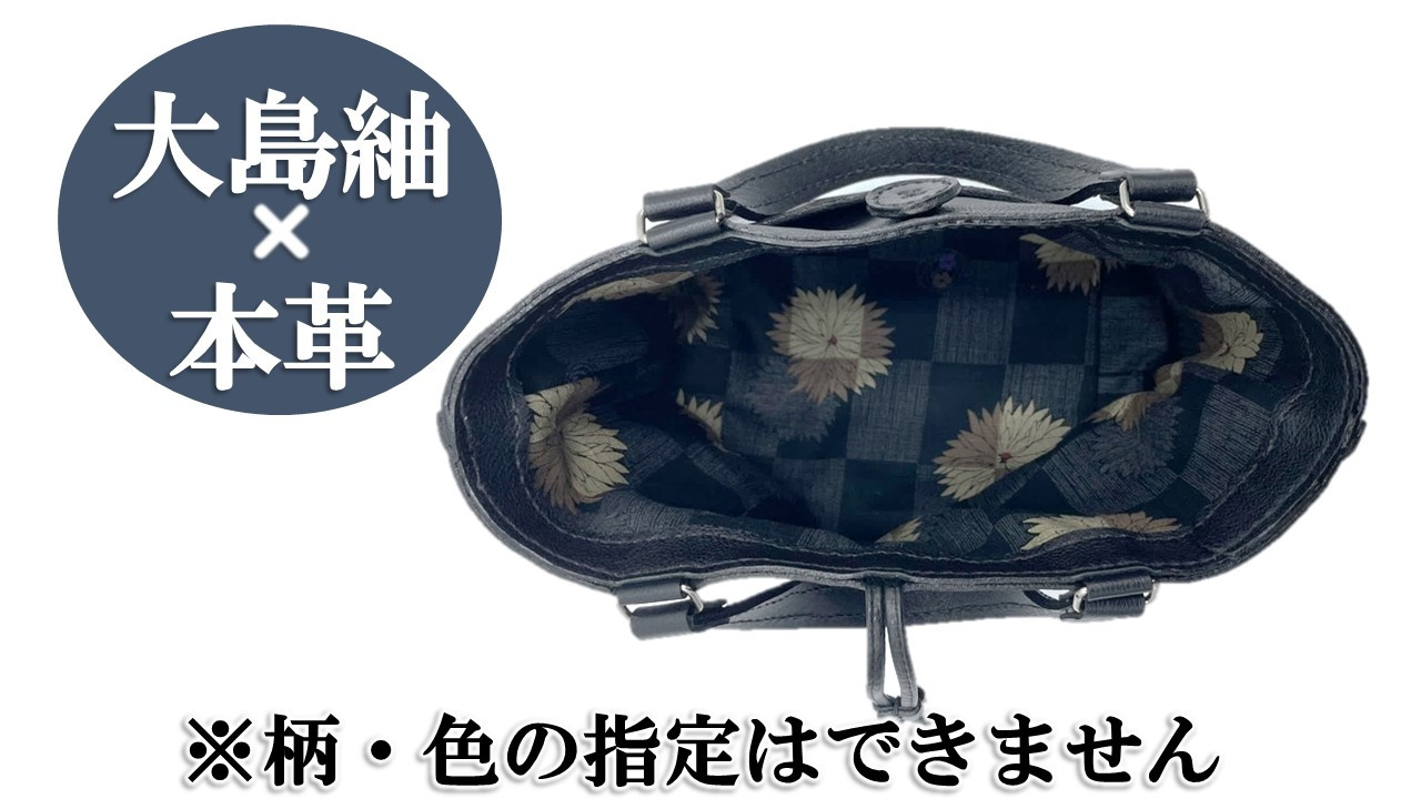 - 【大島紬×本革】トートバッグ 黒 (開け口:紐ボタン掛けタイプ)