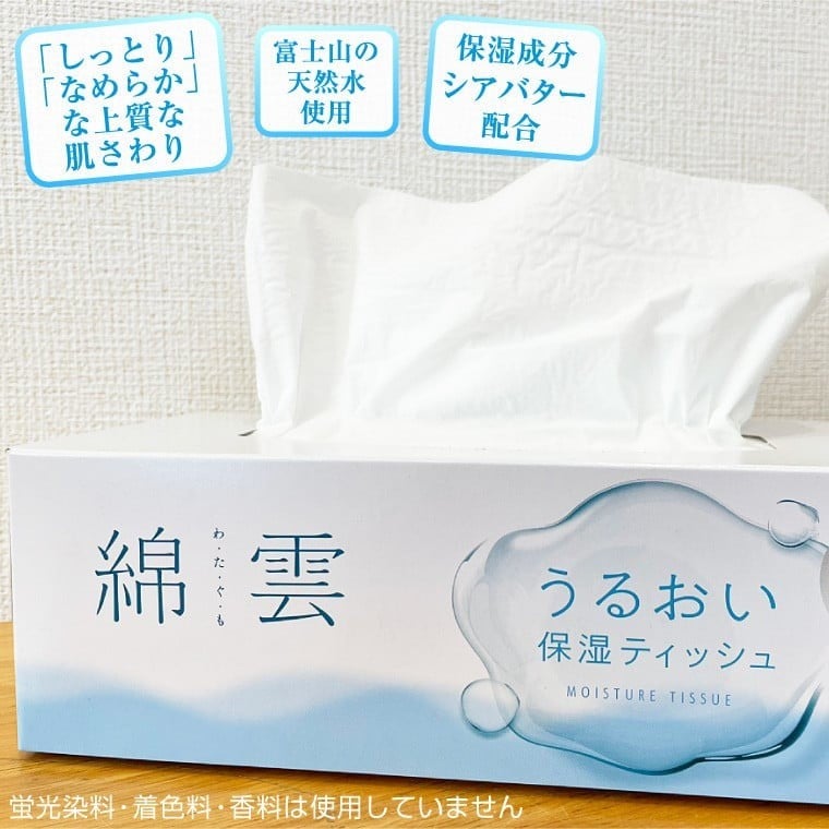 ティッシュペーパー「綿雲うるおい保湿ティッシュ」30箱 (3箱×10セット) (1箱 200組) パルプ100% 保湿成分配合 しっとり なめらか イデシギョー 富士市 日用品(1775)