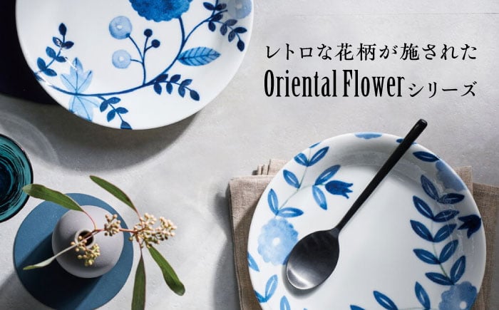 - 【美濃焼】Oriental Flower ペアディナープレート【株式会社二幸】中皿 レトロ 和食器 [MCZ107]