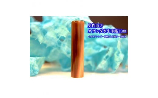 【男性向け】手彫り職人が彫ったオランダ水牛印鑑15ミリ イタリアンレザ-花柄入り印鑑ケース付き