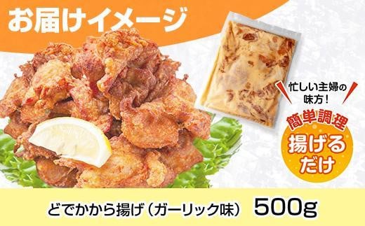 - ES260 どでか味付けから揚げ ガーリック味 500g 唐揚げ からあげ から揚げ ガーリック ニンニク にんにく 揚げ物 冷凍 惣菜 簡単 調理 肉 おかず 味付き 野崎フーズ 新潟県 南魚沼市