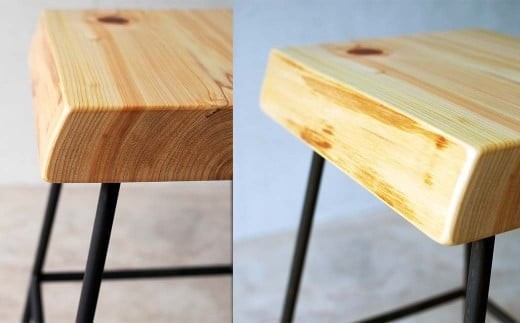 - ヒノキ耳付きのスツール(Compago)45cm E-mp-A15A