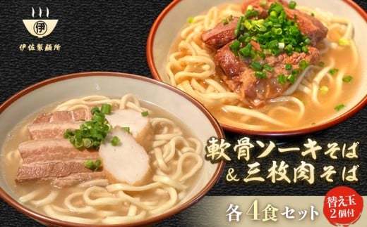 沖縄そば 軟骨 ソーキ 三枚肉 替え玉麺 ソーキそば+三枚肉そばセット(4食) 伊佐製麺所