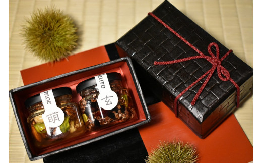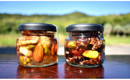 - ナッツ・ドライフルーツの蜂蜜漬 峠プレミアム小瓶2種セット【萌(MOE)】【玄(KURO)】