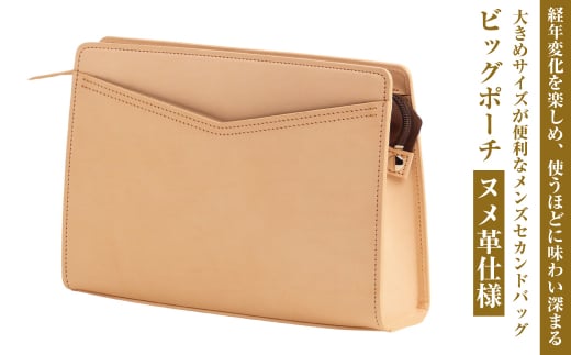 - 大きめサイズが便利な・ヌメ革仕様メンズセカンドバッグ「ビッグポーチ・ヌメ革仕様」