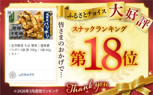 《 自然栽培 そば 使用 》 塩蕎麦 バリボリ 5袋 計 200g ( 1袋 40g ) スナック 揚げスナック 手作り お菓子 菓子 おつまみ そば使用 蕎麦 山形ちば吉