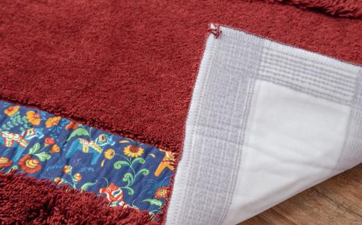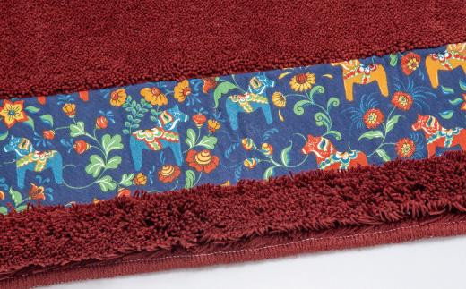北欧の「幸せを運ぶ馬」ダーラヘスト柄の玄関マット ワインレッド 縦50cm×横80cm