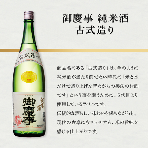 古河の地酒「御慶事」純米古式造り 1.8L×2本セット ※沖縄・離島への発送不可 | 日本酒 純米吟醸 酒 お酒 地酒 セット商品 純米古式造り 1升瓶 一升 2本 家飲み ギフト 贈答 贈り物 お中元 お歳暮 プレゼント 茨城県 古河市 直送 酒造直送 産地直送 送料無料 _AA03