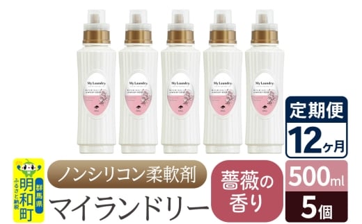 - 《定期便12ヶ月》ノンシリコン柔軟剤 マイランドリー (500ml×5個)【薔薇の香り】