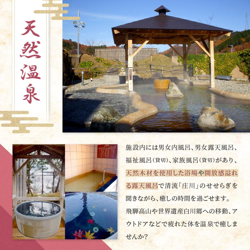 - 【ふるさと納税】荘川の高温、自噴が自慢の天然温泉「桜香の湯」の入浴とお食事券 大人1名様分 | 天然温泉 立ち寄り 日帰り温泉 露天風呂 郷土料理 旅行 クーポン けいちゃん 蕎麦 荘川蕎麦 食事券 飛騨荘川温泉 行楽 飛騨高山 荘川観光振興公社 NK001