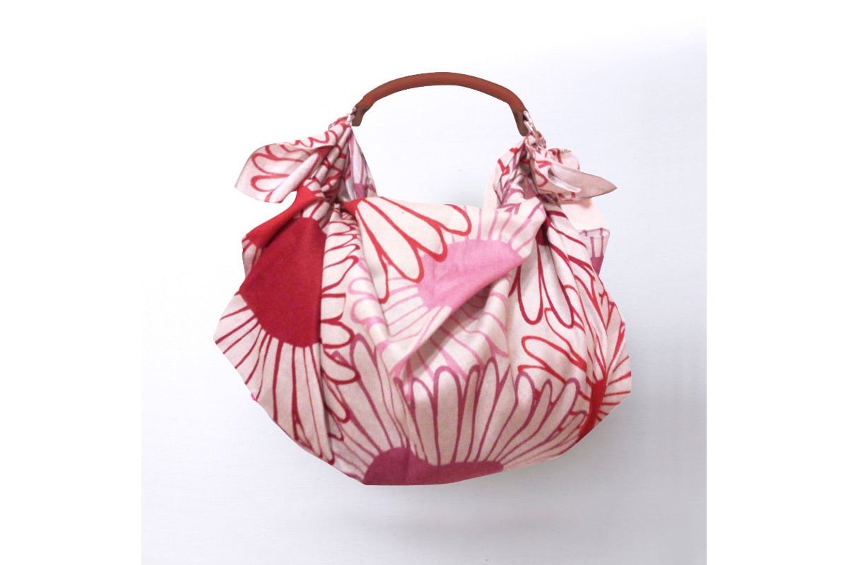 - ウオーク社 手縫いふろしきハンドきせかえバッグセットM(ヒラソル/ピンク)(ハンドル色:アカ)