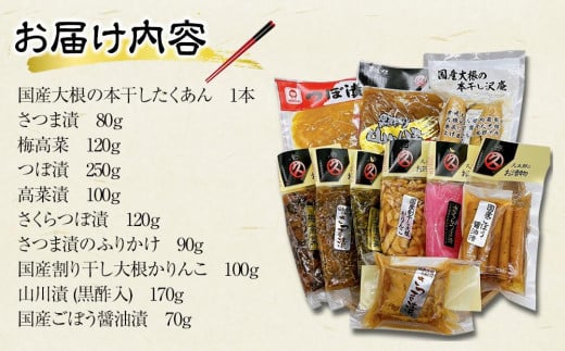 - <明治45年創業>中園久太郎商店のお漬け物セット 10種10品【漬物 つけもの たくあん さつま漬 梅高菜 つぼ漬 高菜漬 さくらつぼ漬 ふりかけ 干し大根 かりんこ 山川漬 ごぼう 醤油漬 お取り寄せ 詰め合わせ おすすめ 贈答 ギフト 人気 中種子町 送料無料 AA02 】