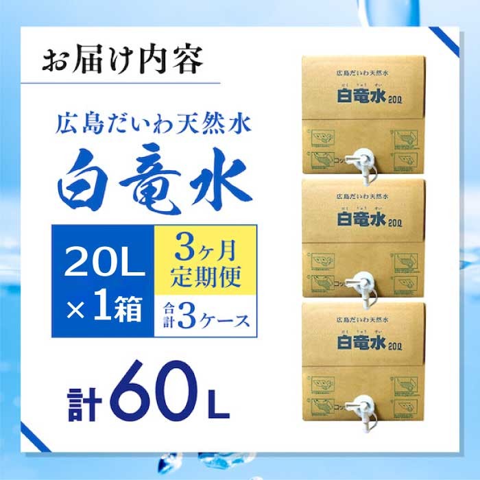 - G7広島サミット2023で提供 広島だいわ天然水 白竜水 20L 定期便 3ヶ月 水 飲料水 天然水 田治米鉱泉所 ミネラル 軟水 ペットボトル 備蓄 災害用 防災 家庭備蓄 アウトドア キャンプ 035012