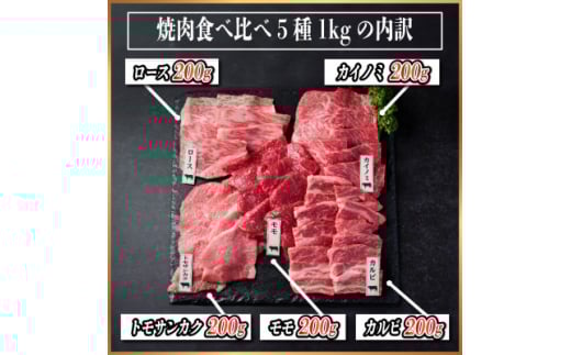 飛騨牛 焼肉厳選5種食べ比べセット(カルビ・トモサンカク・モモ・ロース・カイノミ)約1kg タレ付き【1532671】