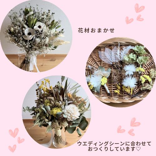 - ドライフラワーのウエディングセット(ブーケ、ヘッドパーツ、ブートニア) XY005
