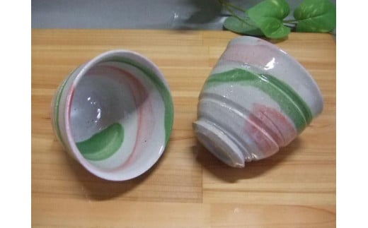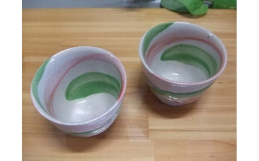 - 【信楽焼】ピンク&グリーンペア湯呑(nwu-023)