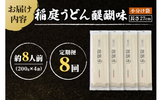 《定期便8ヶ月》稲庭うどん 醍醐味 27cm 200g×4袋 計800g 8人前 ゆうパケット