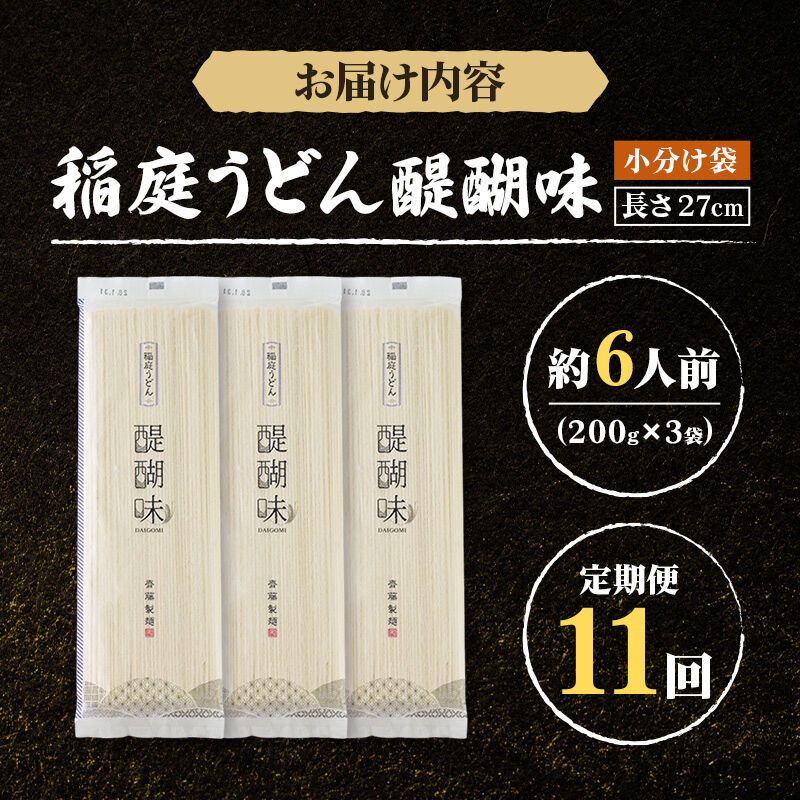 - 《定期便11ヶ月》稲庭うどん 醍醐味 27cm 200g×3袋 計600g 6人前 ゆうパケット