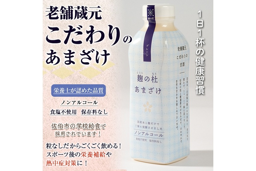 - 麹の杜 あまざけ (プレーン) (計3本・1本あたり850g) 甘酒 あまざけ 米麹 国産 麹 発酵食品 ホット アイス 甘味 飲む点滴 健康 美容 ノンアルコール 【AN113】【ぶんご銘醸 (株)】