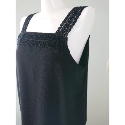 【丹後シルク】キャミソール・ペティコート黒(飾りシルクレース)Lサイズ