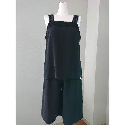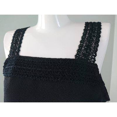 - 【丹後シルク】キャミソール・ペティコート黒(飾りシルクレース)Lサイズ