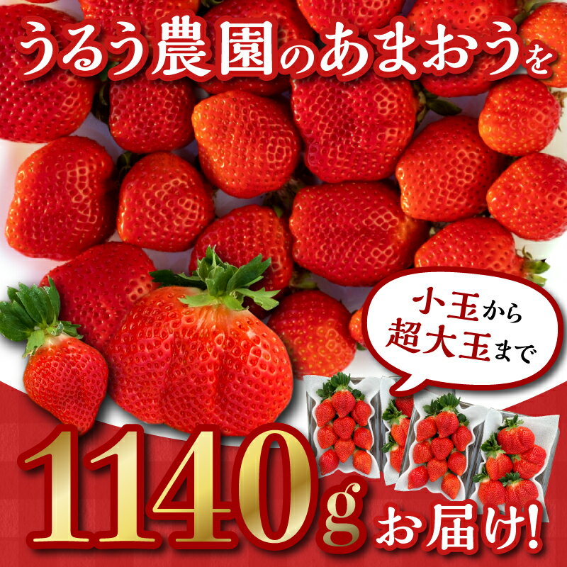 【ふるさと納税】サイズ色々 特別栽培認証 あまおう 苺 4パック 計 1140g うるう農園 安心 安全 Mサイズ 特大 グランデサイズ 福岡限定 ブランド苺 フルーツ 果物 ジャム ムース スイーツ 採れたて 農家直送 クール便 国産 お取り寄せ 福岡県 久留米市 送料無料