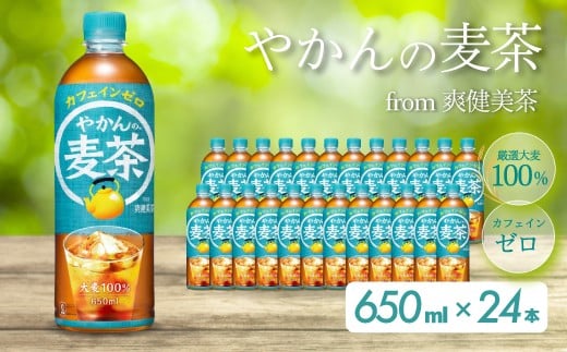 やかんの麦茶 from 爽健美茶 PET 650ml×24本(1ケース) ペットボトル お茶 むぎ茶 飲料 カフェインゼロ 箱買い まとめ買い 防災 備蓄 014005