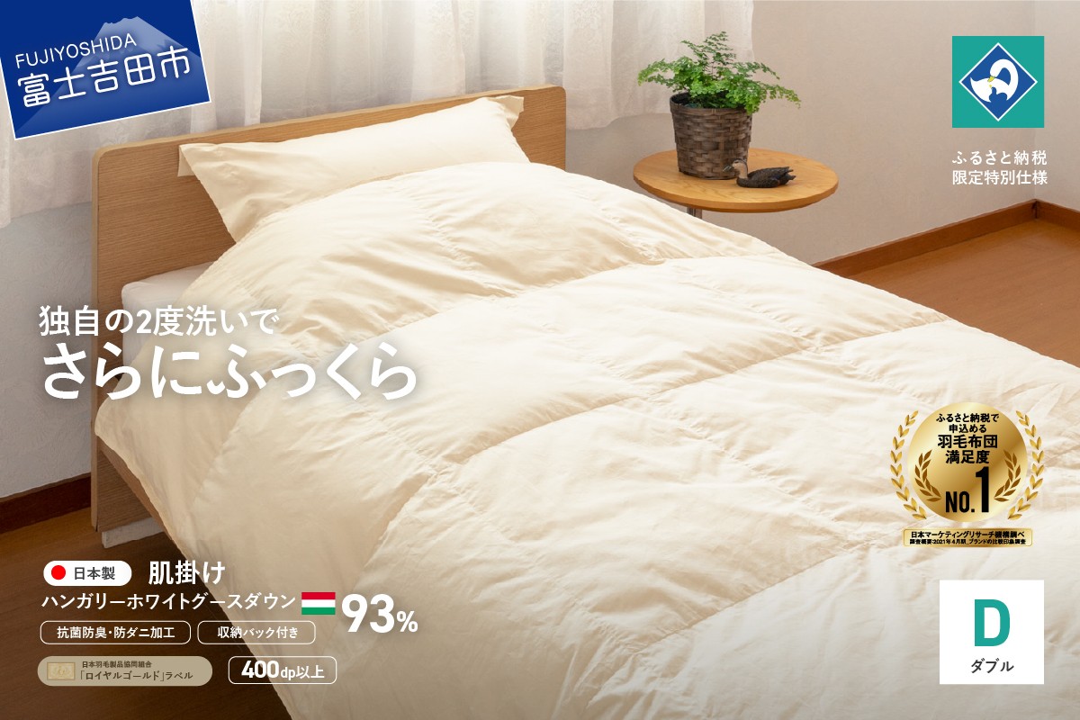 羽毛肌掛けふとん(ダブル)ハンガリー産グース93%【創業100年】 抗菌 抗ウイルス 防臭 防ダニ 肌掛け布団 寝具 羽毛ふとん 山梨 富士吉田