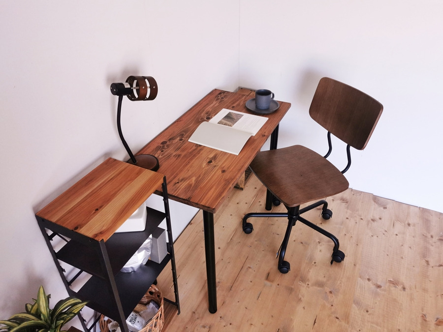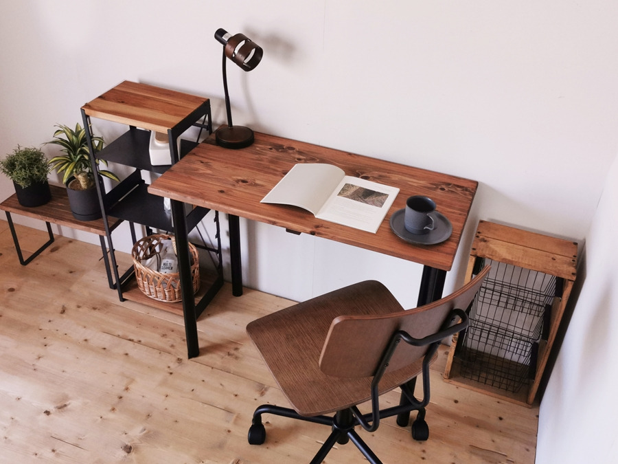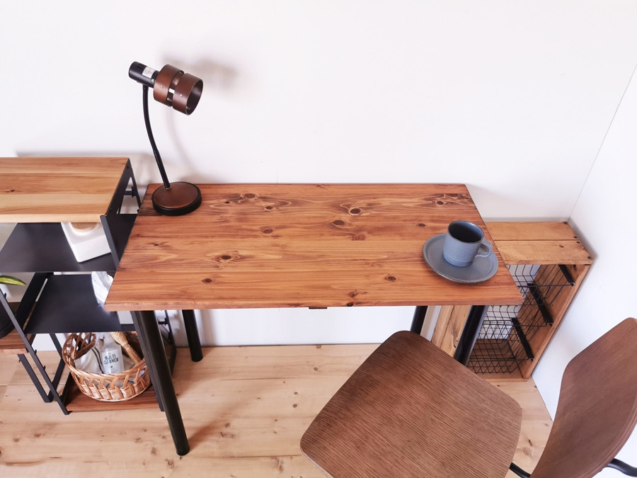 - 無垢材のデスク 約W100cm×D50cm ブラウン|組立 簡単 工具不要 リビング 子供部屋 テーブル 家具 インテリア シェルフ 収納 日本製 [2141]