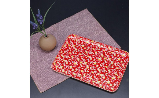 - タツクラフト 友禅和紙トレー M 33cm 2枚セット 小花 舞うさぎ 【Tk308】