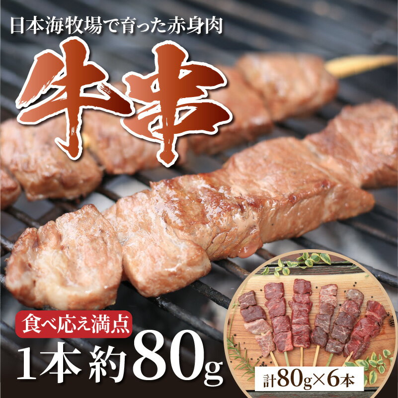 - 【ふるさと納税】日本海牧場の牛串( 80g × 6本 ) 牛 焼き鳥 ヤキトリ 焼鳥 yakitori バーベキュー ホームパーティー 肉 串 BBQ ばーべきゅー キャンプ きゃんぷ アウトドア おかず 惣菜 お取り寄せ グルメ 送料無料