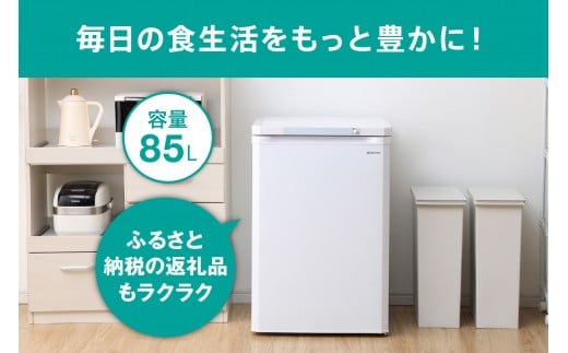 冷凍庫 家庭用 小型 85L IUSD-9B-W 前開き 右開き ノンフロン 前開き冷凍庫 前開き式冷凍庫 省エネ スリム コンパクト 冷凍ストッカー 冷凍 キッチン家電 冷凍 アイリスオーヤマ 家電 電化製品