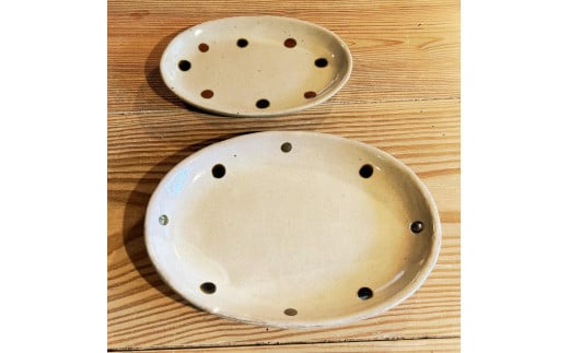 - 益子焼 濱田窯 黒柿文打楕円皿 大小セット | 栃木県 伝統工芸品 陶器 食器 皿