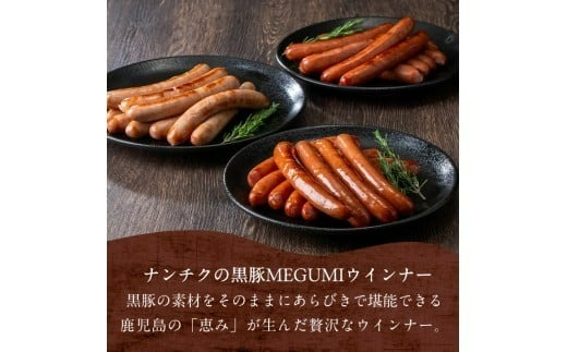 豚の飼養頭数日本一!鹿児島県産黒豚ハムセット1.4kg超!(黒豚手巻ロースハム約700g・黒豚黒豚MEGUMIウインナー3種 プレーン・ジンジャー・ガーリック各1P(144g)・黒豚生ハムスライス100g・黒豚炭火焼豚220g) b2-028