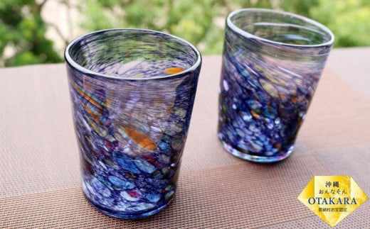 - 『現代の名工』宮国次男作 琉球ガラス<グラス2個セット>ネイビー
