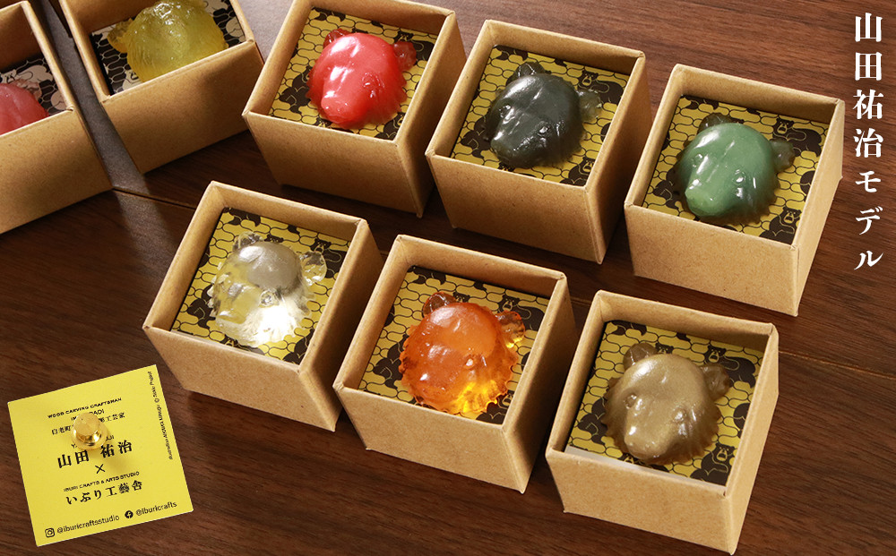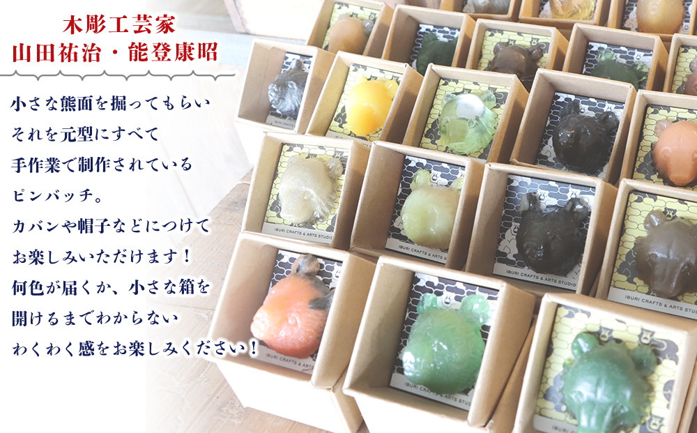 白老 熊マスクピンバッヂ 2個セット<木彫工芸家 山田祐治・能登康昭 各デザイン1点ずつ>