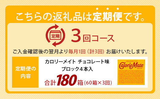 - 【3回定期便】≪チョコレート味≫ カロリーメイトブロック 4本入り 計60箱 ×3回 合計180箱【徳島 那賀 大塚製薬 カロリーメイト チョコ ビタミン ミネラル たんぱく質 脂質 糖質 5大栄養素 バランス栄養食 栄養補給 仕事 勉強 スポーツ 防災 災害 地震 非常食 常備食 備蓄 受験 受験応援 新生活】MS-3-3-choco