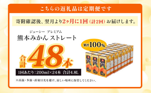- 【2ヶ月毎2回定期便】 ジューシー プレミアム 熊本みかんストレート 100% 200ml×24本 みかん ミカン 蜜柑 ジュース みかんジュース オレンジジュース 紙パック 国産