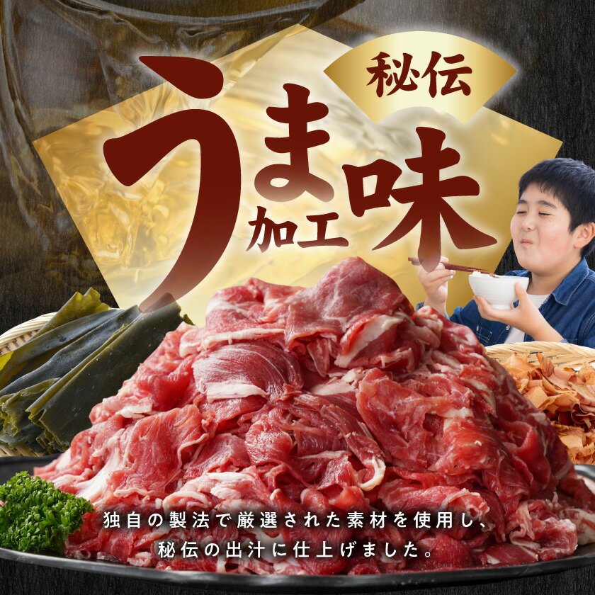 【ふるさと納税】国産牛赤身切り落とし1.8kg(うま味加工) - 牛肉 赤身肉 切り落とし 450g×4袋 うま味加工 昆布だし 冷凍配送 肉じゃが/牛丼/ハヤシライス/ビーフシチュー 秘伝の出汁 真空パック 小分け 送料無料 12-3609 【宮崎県都城市は2年連続ふるさと納税日本一!】