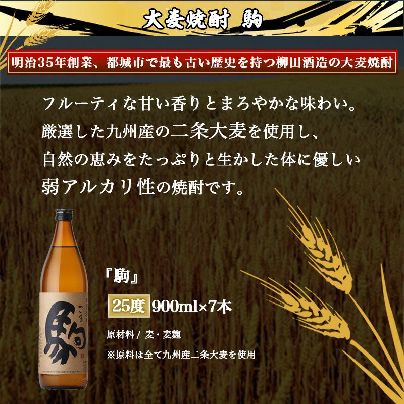 【ふるさと納税】【柳田酒造】大麦焼酎 駒(25度)900ml×7本 ≪みやこんじょ特急便≫ - 大麦焼酎 25度 900ml×7本セット 瓶 定番焼酎 むぎ焼酎 定番焼酎 送料無料 AD-0750_99【宮崎県都城市は2年連続ふるさと納税日本一!】