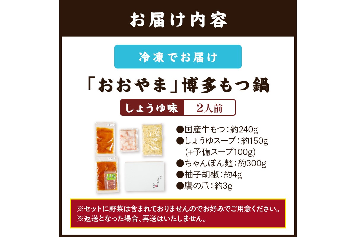 - 【A2-142】「おおやま」博多もつ鍋(しょうゆ味/2人前)