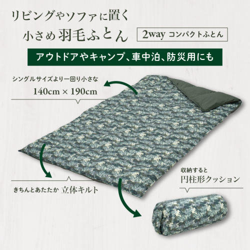 【富士新幸謹製】「サステナブルな羽毛」2WAY コンパクトふとん[ベルク] アップサイクルダウン アウトドア キャンプ ひざ掛け 車中泊 防災用 非常時 お昼寝